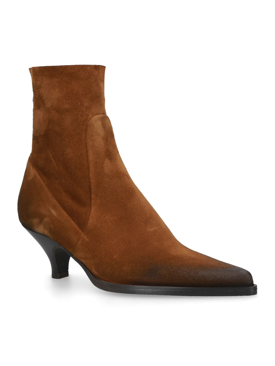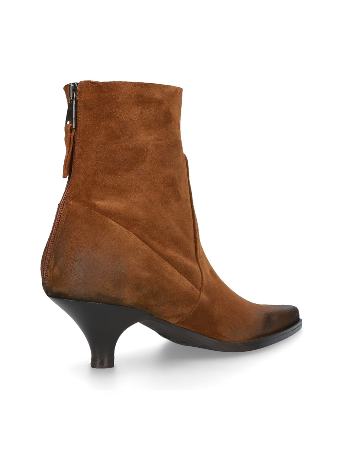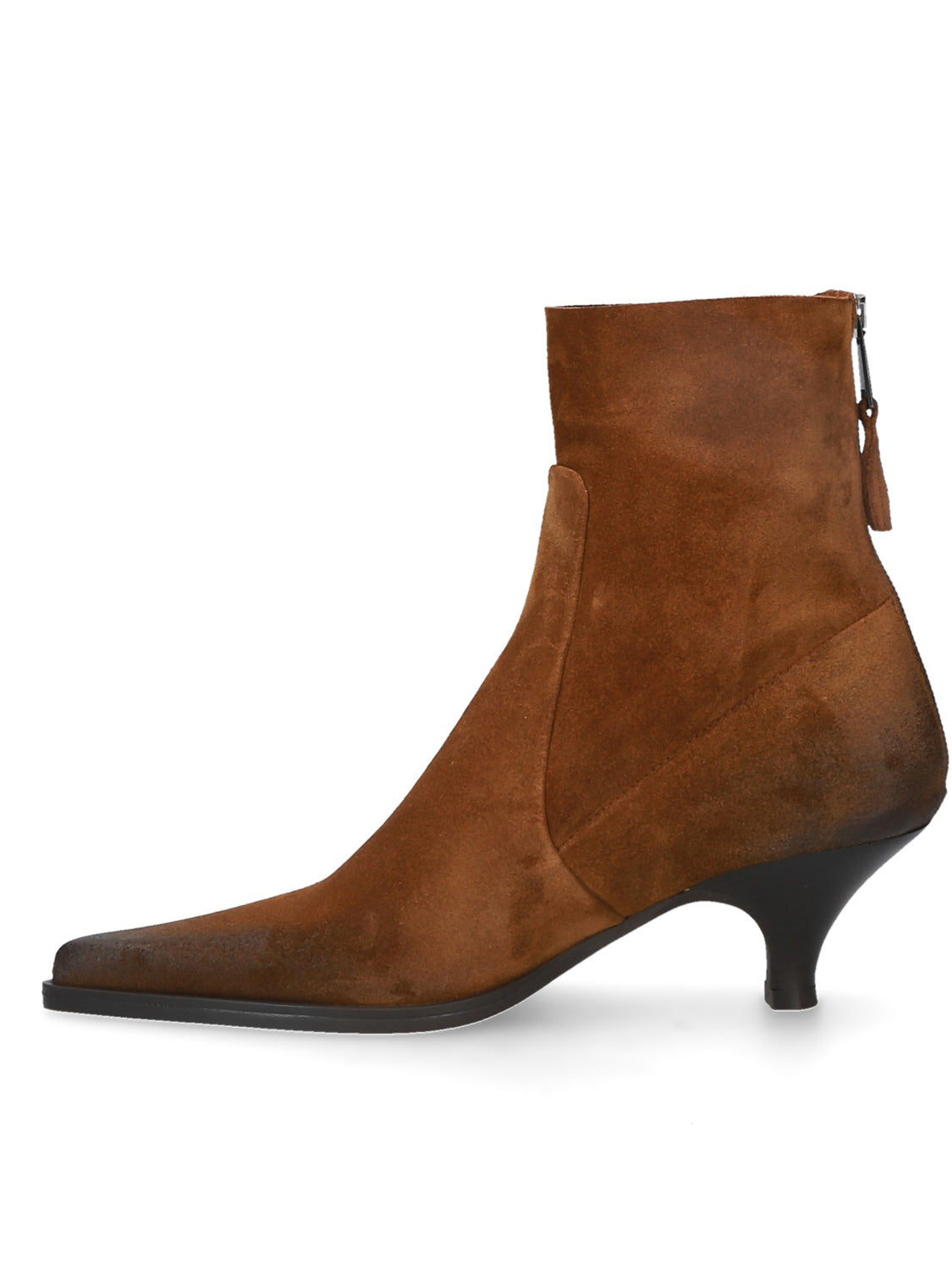 Tronchetto sfoderato in pelle scamosciata, dal design essenziale e raffinato.
